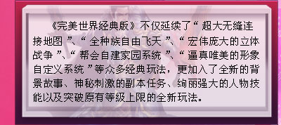 9月15日《完美世界经典版》公测开启,届时将会开启新的服务器供玩家体验。新服新气象,在多倍经验开启的同时,《完美世界经典版》还为新服玩家准备了另一份好礼。为了让玩家更好的体验新服带来的乐趣,新服将会免费一个月,在这一个月内进行游戏将会不扣除游戏点数。