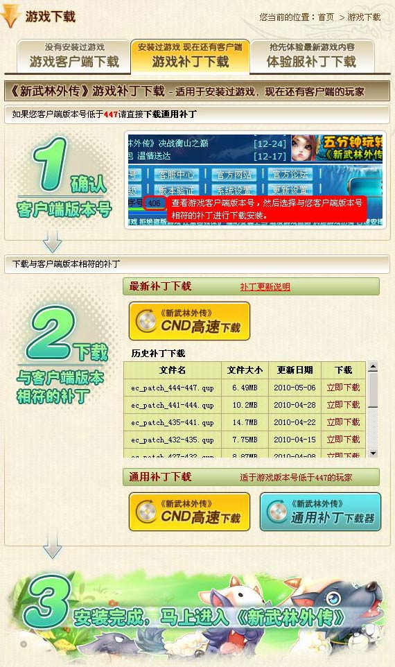 游戏补丁下载地址:http://wulin2.wanmei.com/download/index.shtml