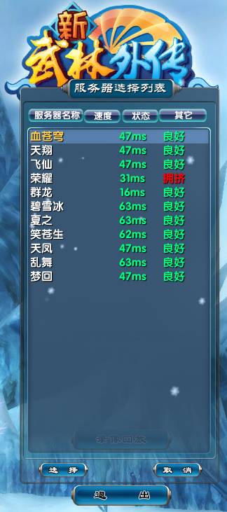 步骤四:在服务器线路列表中选择所要进入的线路名称,点击【选择】按钮进入游戏。