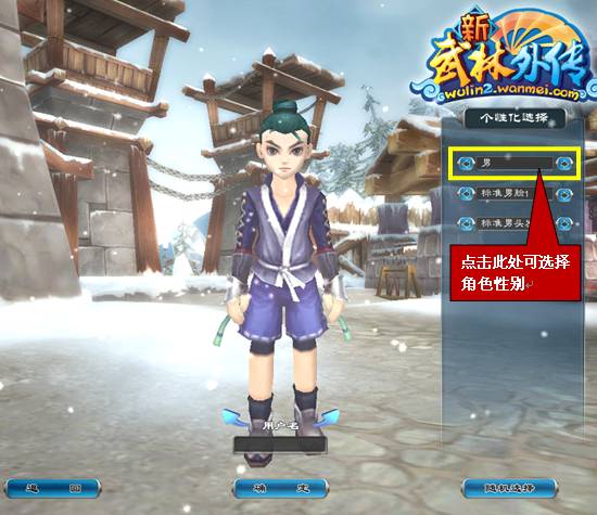 步骤二:下面的界面就是点击“创建人物”按钮后进入的新界面---在这里选择你的人物在游戏中想扮演的性别和装扮。