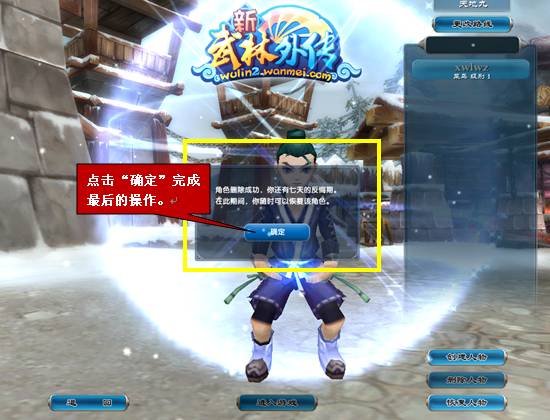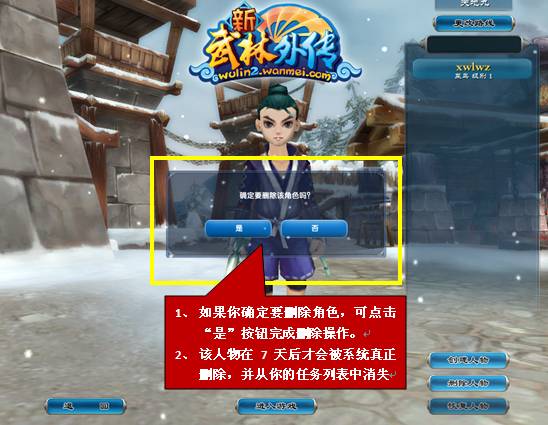 小贴士:这个界面就是点击“删除角色”后显示的内容。