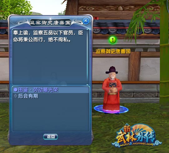 提示:任务每完成一步都会获得一个任务物品——“劳动最光荣”,此任务物品有时间限制,请玩家注意掌握时间。且只有携带物品“劳动最光荣”才能继续下一步的环任务。