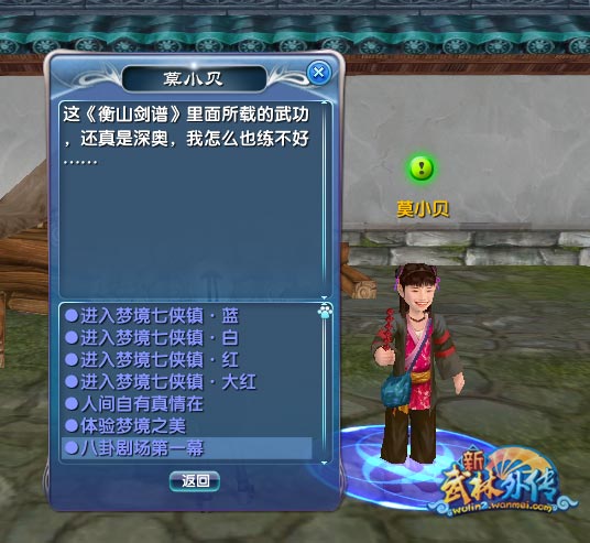 八卦剧场任务从5级开始,每十级一档,无特殊说明均在各地图村长处领取;七侠镇第一幕任务在莫小贝处领取;剧场任务奖励大量经验、各种绿色称号以及稀有宠物;