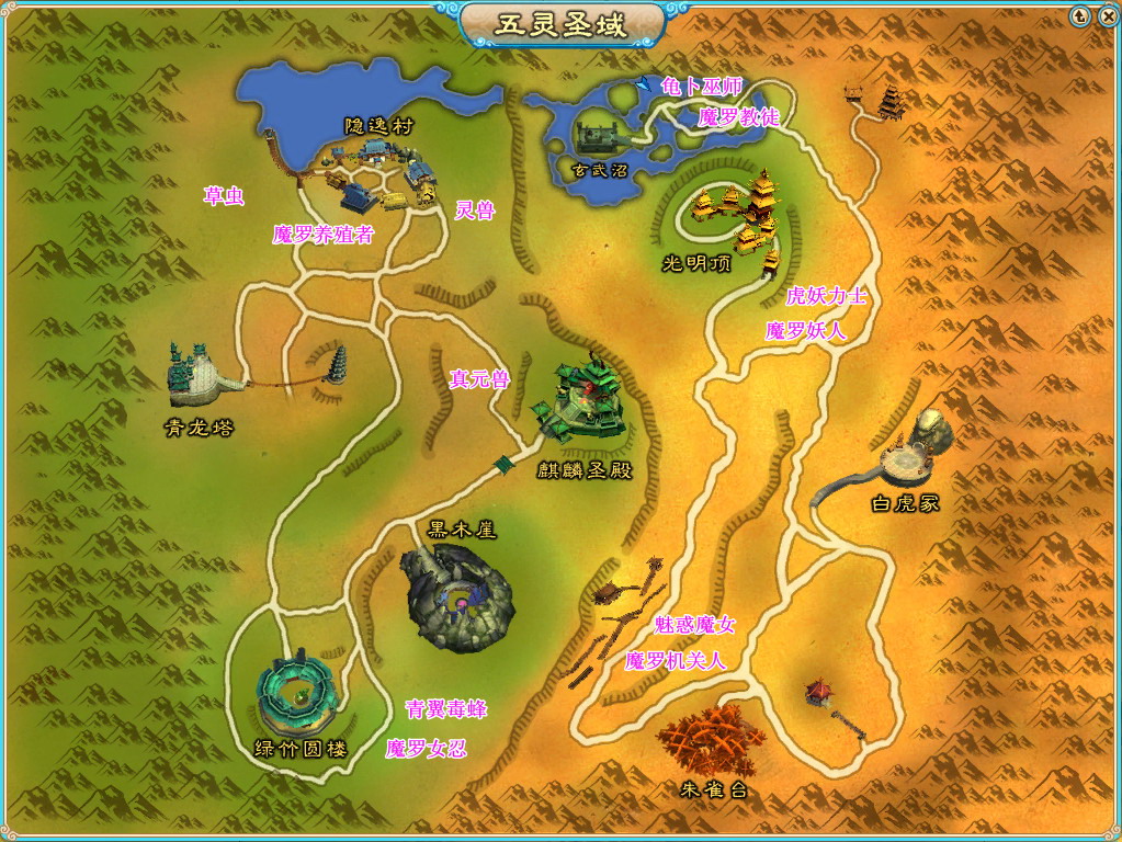 此处先天呈现阴阳太极之象,四方中央更是有着五处上古遗迹,据当地人介绍,此五处遗迹分别为青龙塔、朱雀台、白虎冢、玄武沼与麒麟圣殿,恰对上古五灵兽之名,因此被唤作“五灵圣域”。究竟此处有何秘密?当地人也语焉不详,只道上古之时曾有绝世邪魔,与天神大战,一战之威,天地为之变色,天神勉力胜之,将其封印于太极之下,以五灵兽之精魂镇压其上,欲以天地之造化涤去邪魔之煞气。然而,世间屡经战乱,杀伐之意大盛,千年之前,邪魔竟破印而出,忽现于世,一时间,九州萧条,宇内俱焚,神器流离,生灵涂炭。幸得某位高人机缘巧合之下得到无尚神器,以毕生功力与神器之力将邪魔制服,再度封印于五灵圣域。此后,这位高人便退出江湖,于五灵之所添筑封印,自己更是隐逸于此,娶妻生子,躬耕南亩,他的后代——隐逸一族便成为了此处世世代代的守护者。