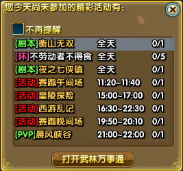 每当玩家进入游戏后,系统会自动弹出当日的线上活动指南,让您清晰了解当天有哪些合适您做的活动。