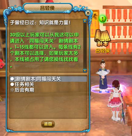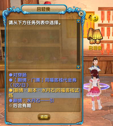 二、领取门票后,还是在吕轻侯处进入单人剧本‘同福闯天关’。