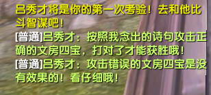 三、进入剧本后,首先需要挑战的就是吕秀才。注意,不是要打吕秀才哦,而是要打吕秀才召唤出来的文房四宝。