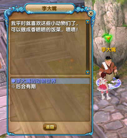 八、成功拿到4件物品后,在服软的小郭处领取下一关任务‘李大嘴的动物世界’。
