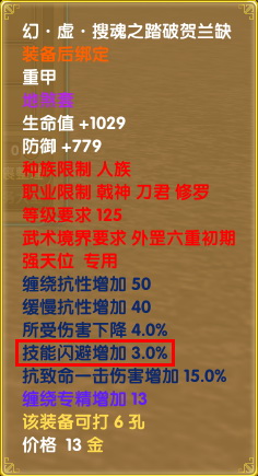 幻•虚•防具衣服部位生命属性由2400提升至3500,技能闪避2%提升至3%;鞋子技能闪避2%提升至3%。