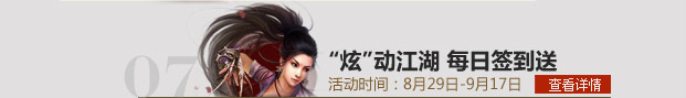 “炫”动江湖,8.29江湖为你而“炫”!活动期间玩家累计在线时长超过一定时长,即可获取相应的宝石碎片礼包一份,当然越久越多喔!