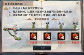 累计签到7天、14天、21天以及28天,还可获得额外的签到奖励。