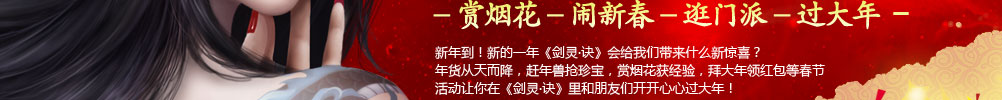 活动介绍:2012龙年到,《剑灵•诀》恭祝所有热心玩家龙年吉祥!在新的一年里,希望每一位《剑灵•诀》的玩家都可以锦鲤化龙,新年龙腾虎跃,更有新收获!除去浓浓的祝福,我们还为您送上海量礼品!龙形随从、雪豹坐骑、极品法宝装备等游戏内奖励让你高人一筹独霸天下...