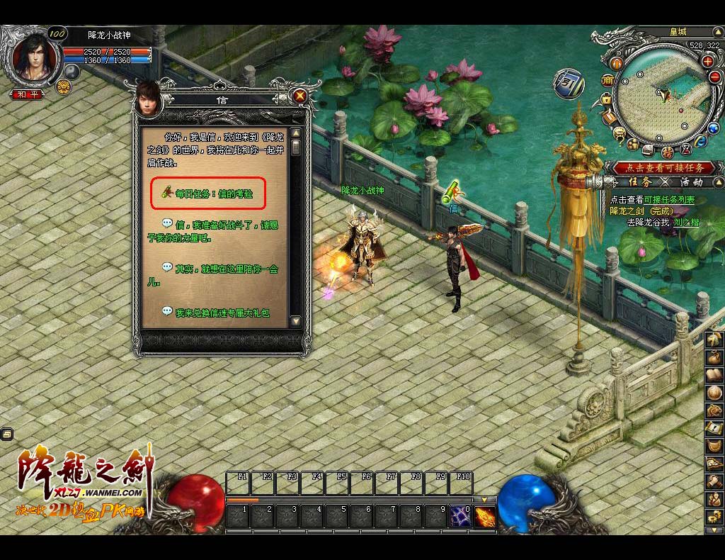 1、等级达到20级的玩家每日可在皇城NPC信(530,323)处领取【信的考验】任务。