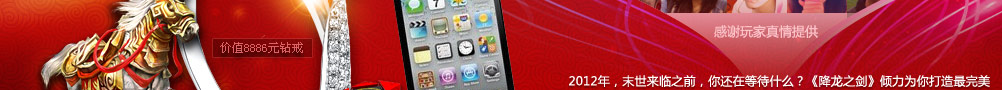 相信你们都会珍惜曾经的往昔,都想升华和留住彼此的爱,执子之手与子偕老,来《降龙之剑》官方论坛大胆晒出你们的甜蜜吧!最令人动容的甜蜜秀将能获得官方赠送的情侣钻戒一对,并将获得北京三日游(含往返机票)!活动结束后,还将从参与者中随机抽取送出精美情侣周边。