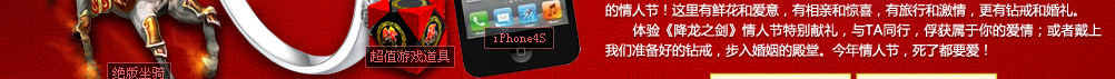还在为单身发愁?想找个100%完美情人?《降龙之剑》线上单身男女万人相亲party情人节华丽开场,赶快准备穿越时空,寻觅真爱吧,所有参与相亲的男男女女还将能够获得游戏赠送的神秘礼物一份哦。