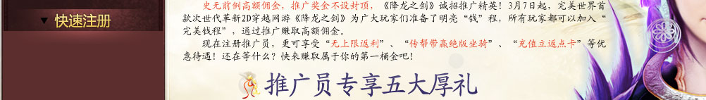 3月7日起,所有玩家都可以加入“完美钱程”,通过推广赚取高额佣金。转发此微博并@5个以上好友,将参与Q币、降龙周边、价值千元礼包等奖励!获奖名单将在3月7日、3月14日分两期公布!转发即可参与!