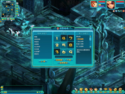 1. 阵法选择:点选右侧的其中一个阵法即可,所有阵法格子都显示数字编号,且以高亮和不可用两种状态显示。