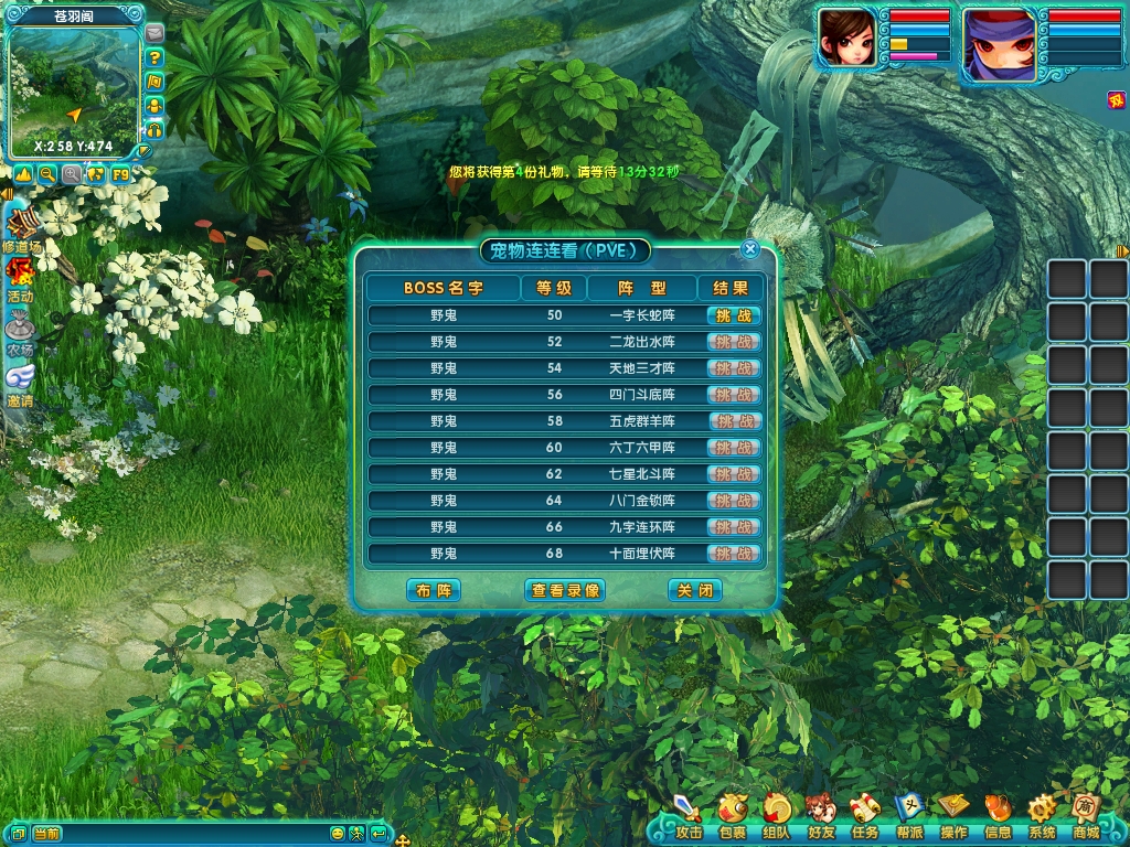 宠物界面和修道场中宠物PK相关玩法布阵介绍: