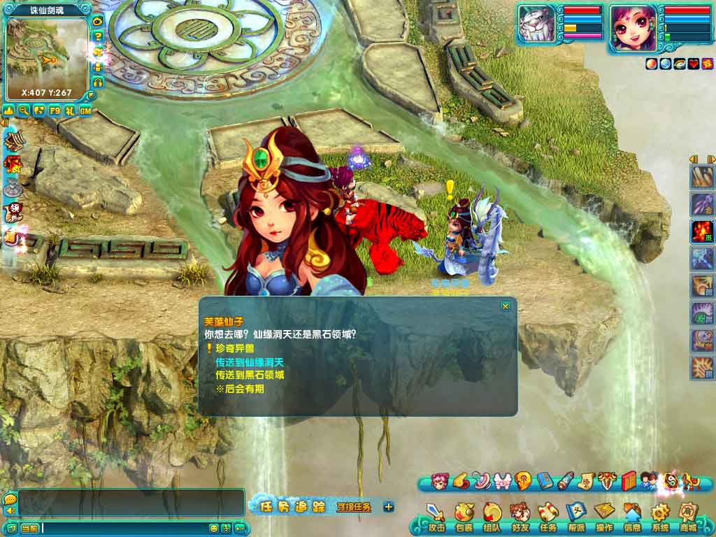 活动内容:玩家可在诛仙剑魂找到芙蕖仙子(诛仙剑魂407,267),通过芙蕖仙子的指引,进行珍奇异兽活动。芙蕖仙子会随机给予用户任务,让用户进入仙缘洞天,或者黑石领域完成任务。
