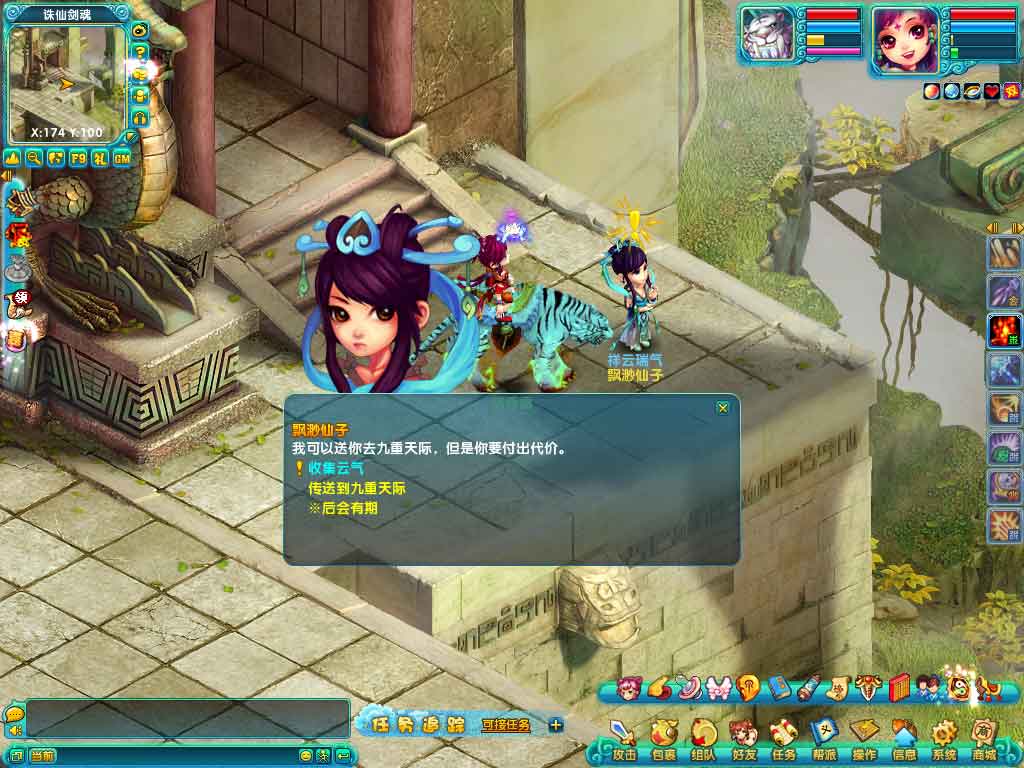 1、玩家可在活动开启时,在诛仙剑魂找到飘渺仙子(诛仙剑魂407,267),通过飘渺仙子接取收集云气任务,或者直接进入九重天际地图参与活动。