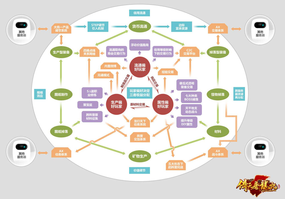 《倚天屠龙记》中所采用的“AX”技术,可以真正实现跨服概念,玩家可以任意进出所有的服务器,与其他玩家进行PK、互动, 完全打破服务器之间的屏障,实现无界交流。