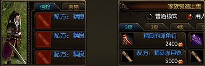 3、生产可获得蓝色品质装备,蓝色配方可通过提升领地声望、门派声望、副本声望后在NPC处购买,家族、帮派的铸造司也将会出售蓝色配方,如图所示: