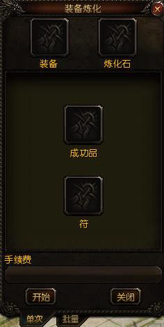 3、 在炼化装备界面放入所要炼化的物品,然后放入所对应的装备炼化材料,点击炼化即可(可单次炼化,也选择可批量炼化)。如图所示: