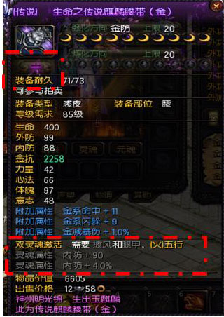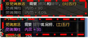 每条灵魂属性激活都需要满足XX部位需要什么五行的需求。