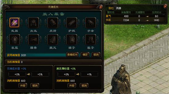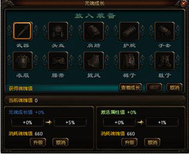 升级元魂成长值可提升吃装备时,增长元魂属性的百分比。