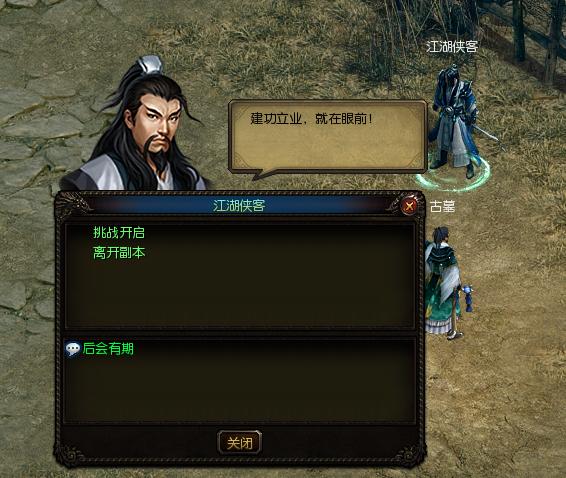 进入副本,和江湖侠客对话,开启挑战。