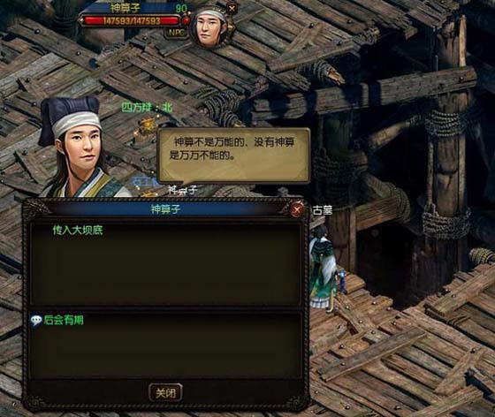 干掉剑魔传人,同时把机关打掉,地面上会出现一个大洞,直通大坝底下,对话神算子,传入最终决战之地