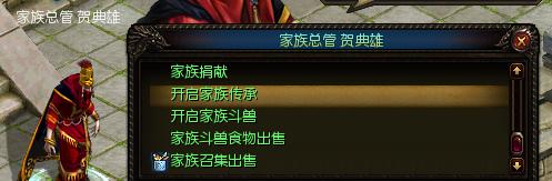 家族传承开启条件:家族族长点击“家族总管、贺典雄”开启;