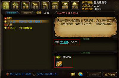大侠们看到了,经验非常高,而且还可以获得皇极经世书。大侠们完成任务后直接回复云舞阳就可以完成,而随着等级阶段的不同,所接取杀怪类型会随之改变,当然,经验的获取也会更高的。还在等什么,赶紧去完成任务吧。