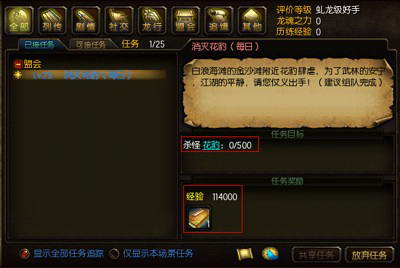 大侠们进入倚天江湖中,相信按照主线列传任务,很快就可以到达25级,升级那是相当的简单啊。而这时大侠们的升级还主要靠任务获得升级经验,而日常任务更使重中之重,获得的皇极经世书可以积攒下来等待更换装备。