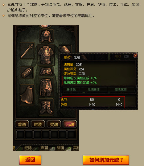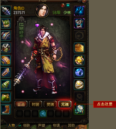 点击元魂按钮,可打开元魂界面