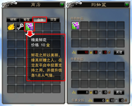 在投支持票的时候,若身上没有投票用的精美鲜花,您可以从河阳黑市商人处购买。