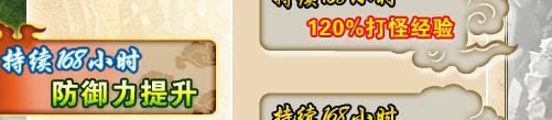 ·120%经验光速升级——打怪经验升至120%,与游戏中双倍经验不叠加,以最高效果为准。