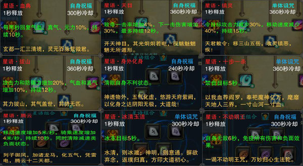 采星、无尽之塔、河阳 三官大帝、诛小仙养成等4种方式都能够获得星文。 星语组合与技能效果请查看下表: