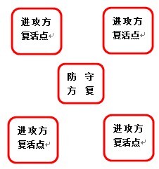 ♦如果攻方某一帮派的复活点被摧毁则该复活点的帮派玩家死亡后不能选择自动复活,只能等待本方(进攻方的帮派成员)拥有复活技能的玩家通过技能复活,此时若退出主战场则无法通过NPC传送服务再次进入。