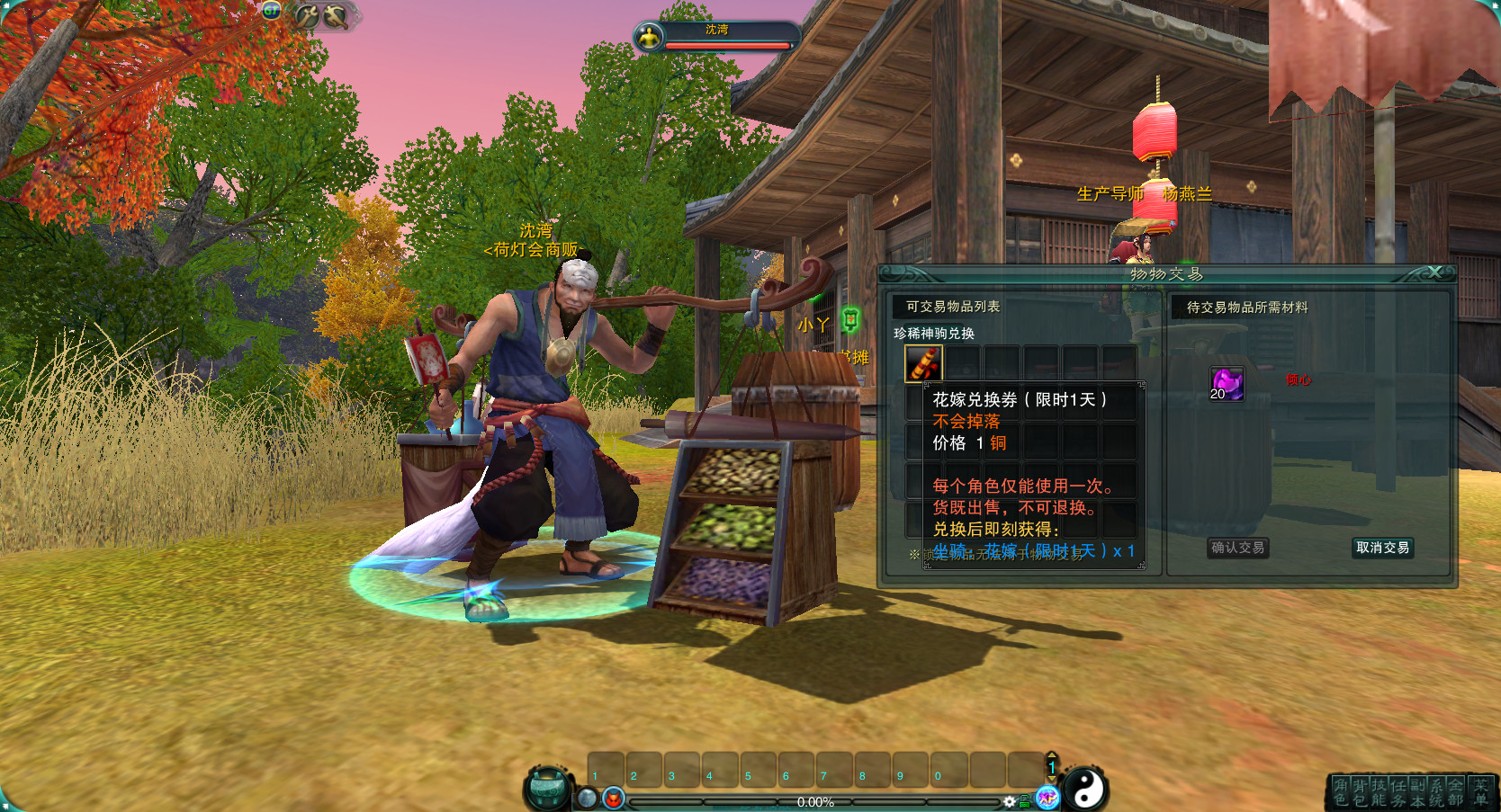 兑换坐骑:仙友可在流波商贩沈湾处使用20个"倾心"兑换1张限时坐骑兑换券,获得兑换券后即刻触发兑换任务,系统将自动发放限时1天炫酷坐骑:花嫁1个。