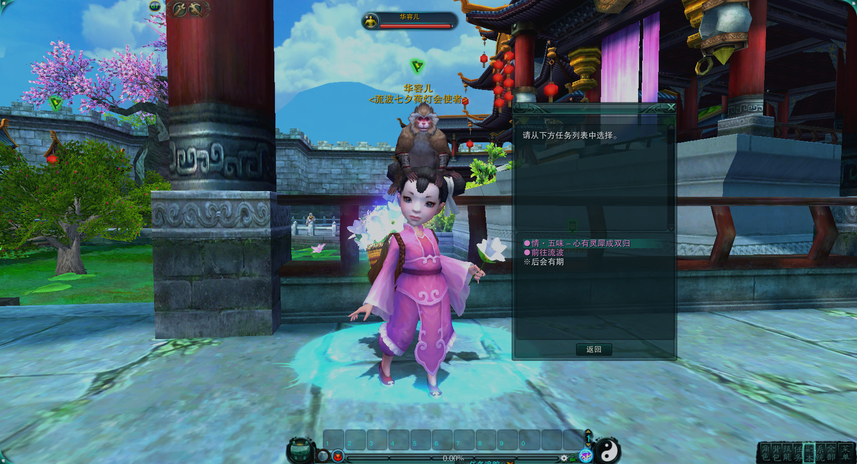 同时仙友还可在流波小池镇内的水盆处,消耗一定数量的"倾心"接取获得荷灯的任务,完成任务将有几率获得心愿荷灯。