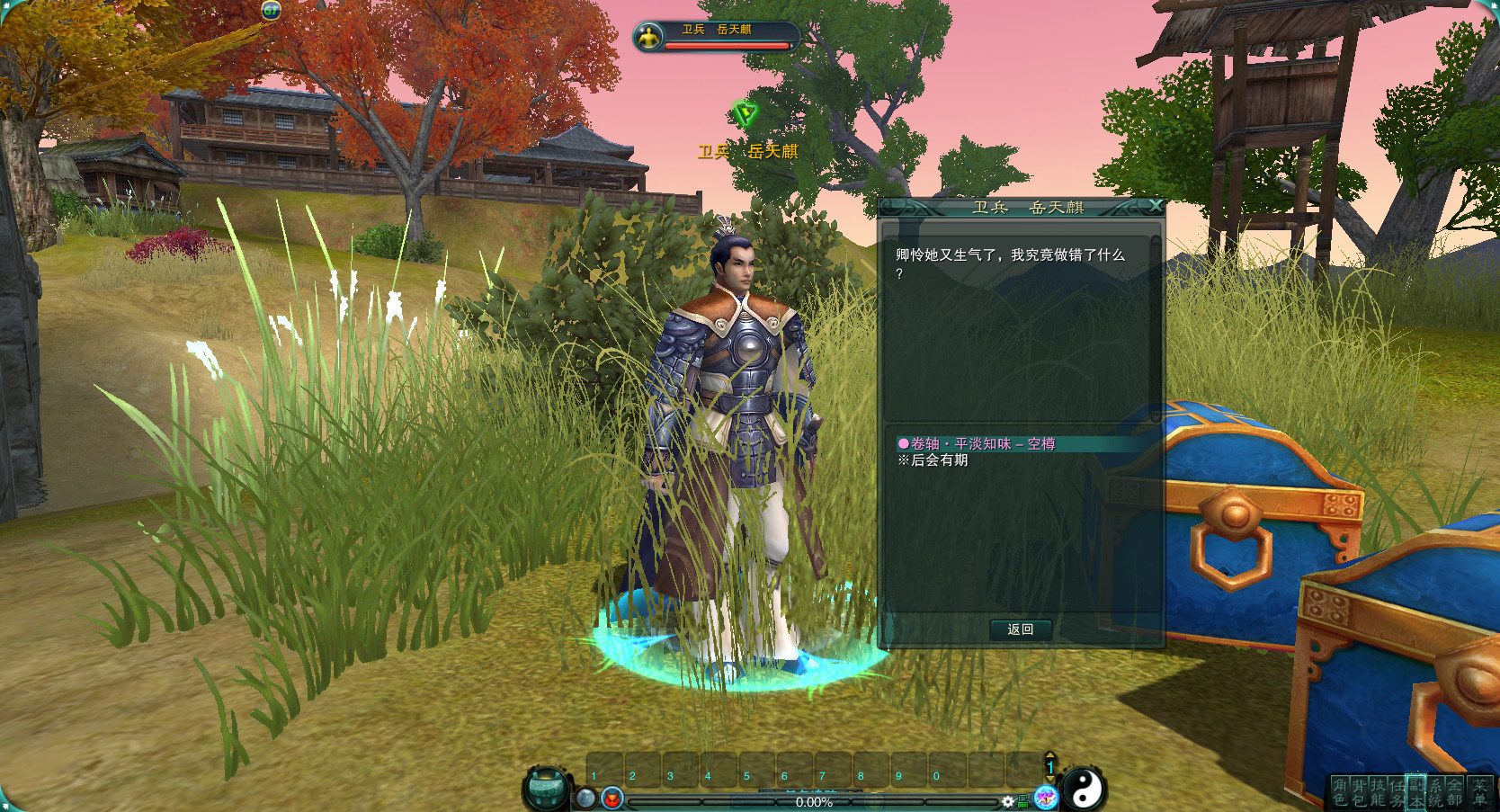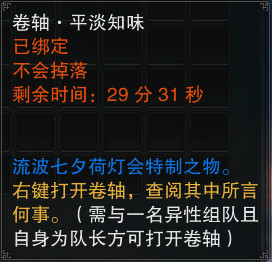 队长获得"卷轴•平淡知味"后,右键点击即可接到任务:卷轴•平淡知味-空樽,队员也将自动接到该任务。需要组队的仙友一同前往流波与卫兵 岳天麒对话。