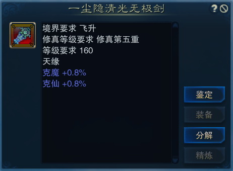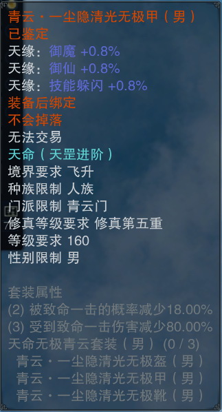 鉴定后的天命装备,将会显示出角色的门派职业、种族、性别,原"坯子"天命装备也变成该职业对应的装备。