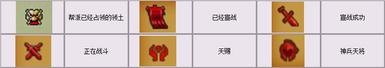为了避免多个帮派同时挑战同一块领土,下战书以战标的形式出现根据宣战方所出宣战金决定攻打这个领土的帮派。下战书成功后,系统将自动提示开战时间。