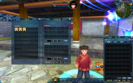 与【幻灵童子】对话后选择购买幻灵石,将物品拖动至购买窗口后即可进行购买。