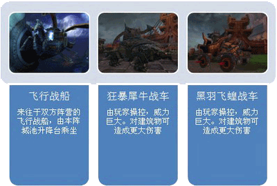 3、飞行战船会在双方阵营上空反复航行,从本阵城池中的两个升降电梯可以登入,是进行偷袭、空降等策略利器。