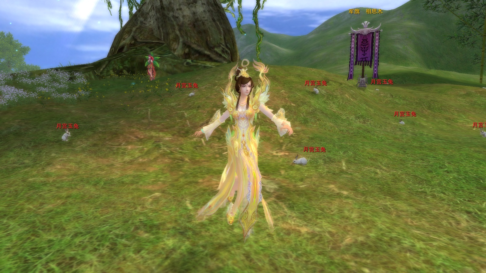 在吴刚处接到任务“越狱的兔子”,任务要求我们在10分钟之内抓回更多的玉兔。背包中会得到【补兔网】和【扁铲】。