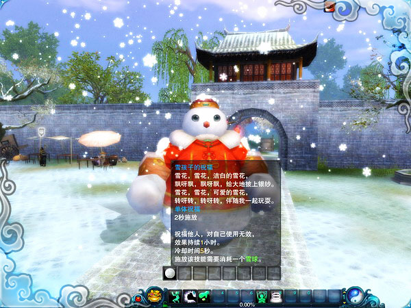 变身雪人后能使用特殊技能“雪孩子的祝福”,将其他人变身为雪人并获得各种提升属性的增益效果,持续1小时。