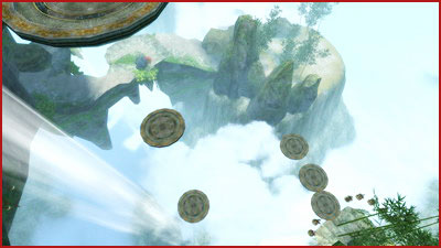 利用场地上空移动的平台跳跃前行,在终点处悬挂着“吉祥钟”。